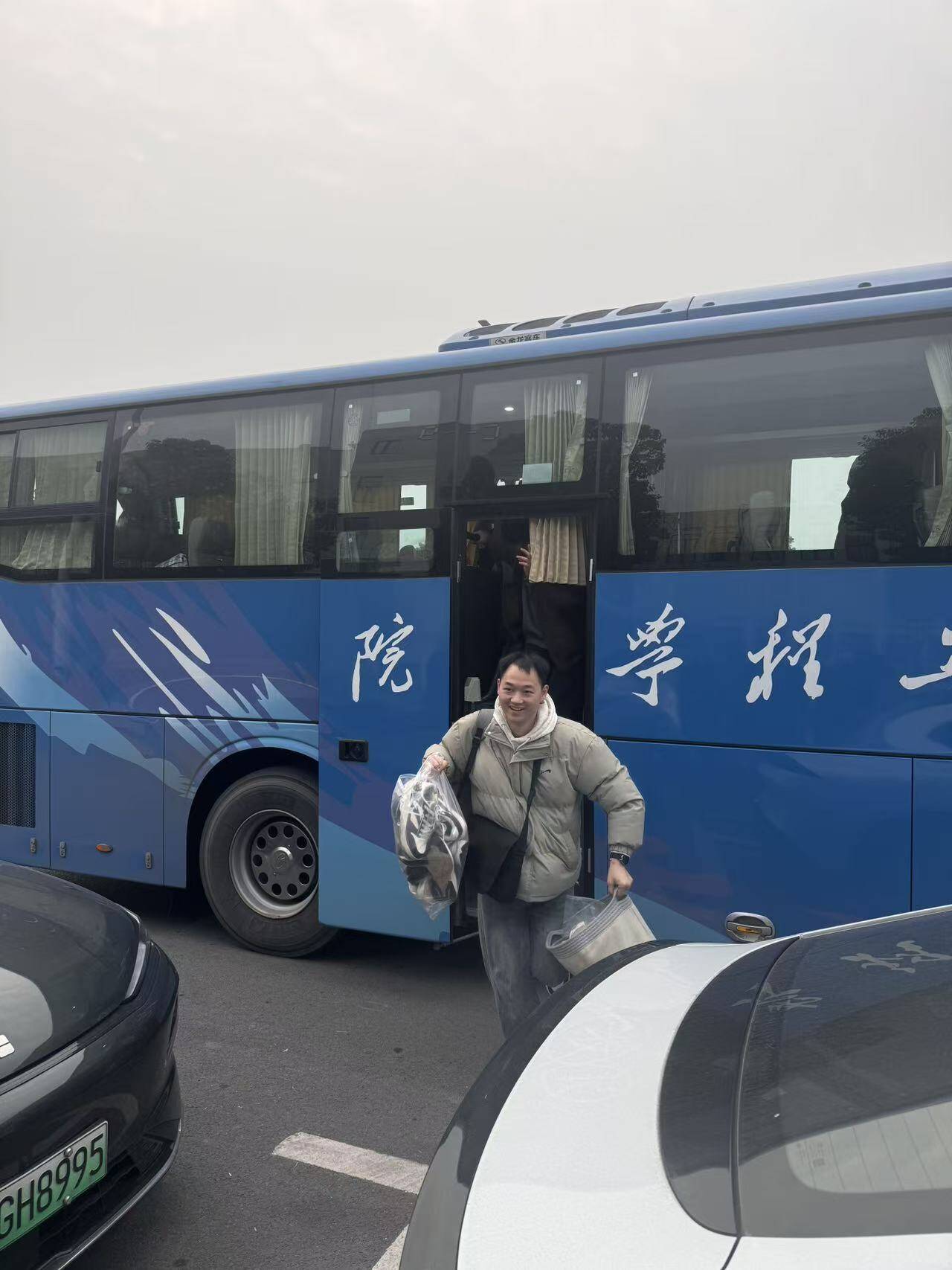2026年1月12日上午,软件学院20名2026届毕业生结束了校内“传音智能手机设备交付测试基地”任务,从此踏上了到企业就业的旅途,学院就业科滕攀老师全程护送。