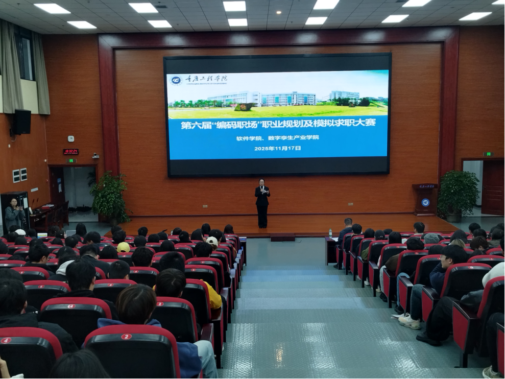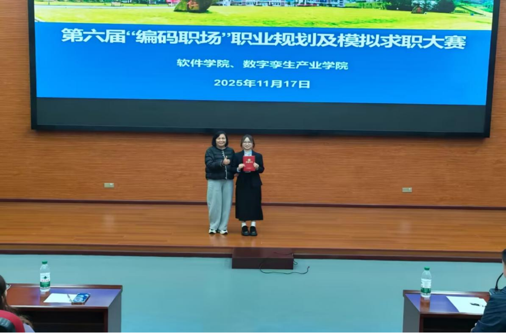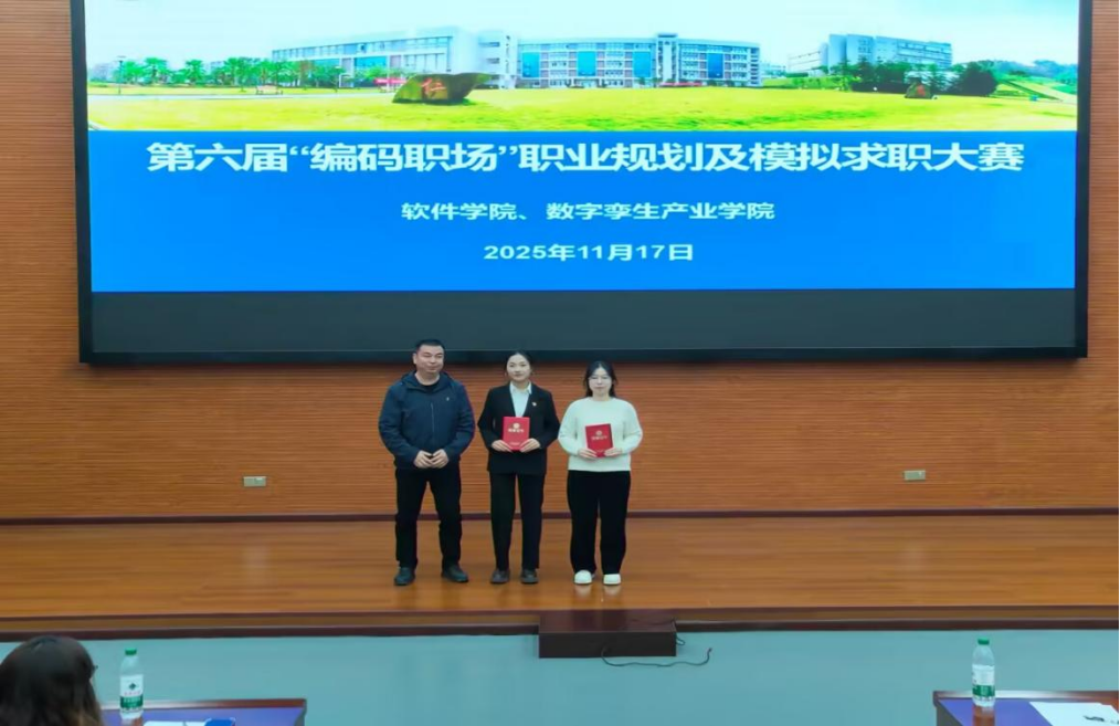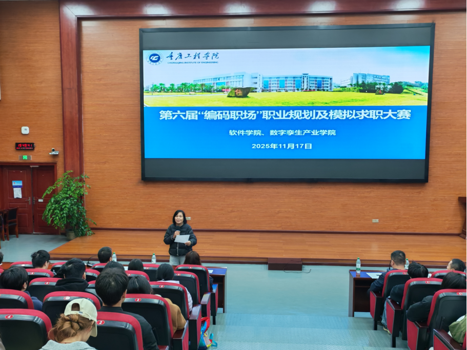 为帮助学生做好职业规划及学业发展规划,树立正确的就业观念,提升就业能力,2025年11月17日,软件学院与数字孪生产业学院联合开展第六届“编码职场”职业规划及模拟求职大赛。经过初赛的激烈角逐,15名选手脱颖而出参加学院复赛。复赛邀请有职规赛指导经验的老师及有丰富的项目经验的企业领导担任评委。